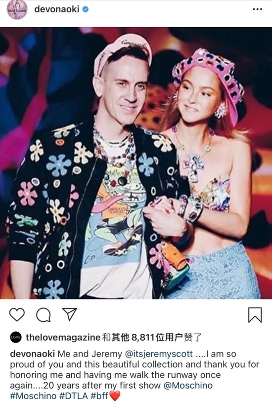 Jeremy Scott甚至在自己同名品牌的20周年庆典上,把自己的经典作品全权交付给Devon Aoki,这是两人友谊的最佳见证。